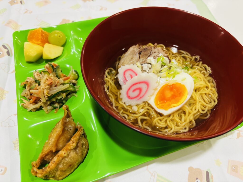 食堂では、醤油ラーメンをメインとした中華料理とデザートはビタミンたっぷりのフルーツをお出ししました🥟🍜🍊 文化教室では、12月のクリスマス意識した内容を用意しました🌲🎅